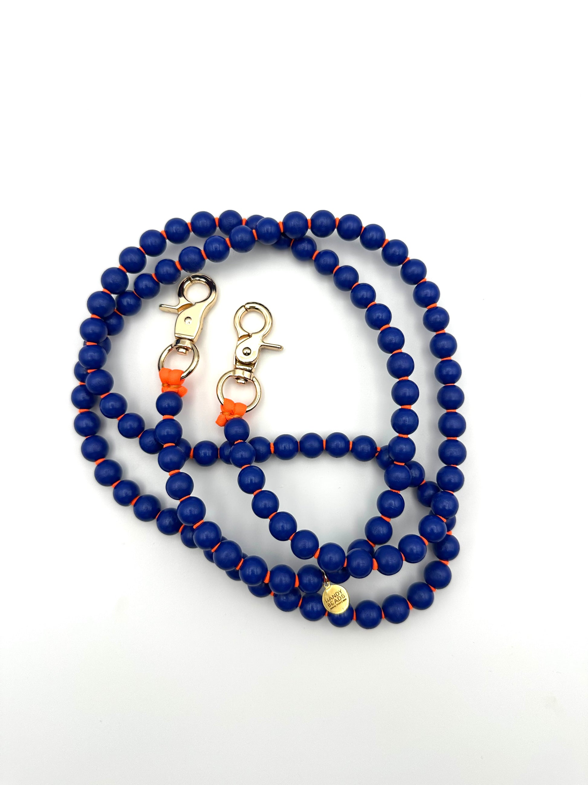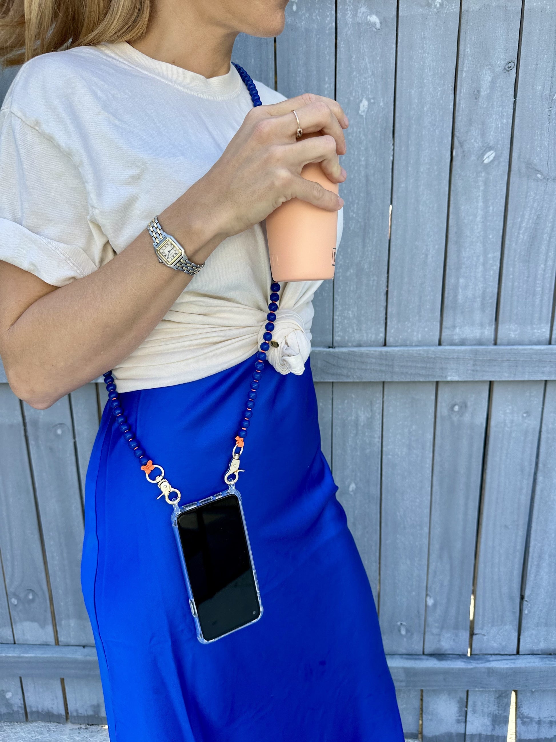Phone Case with Beaded Chain - Dark Blue with Orange