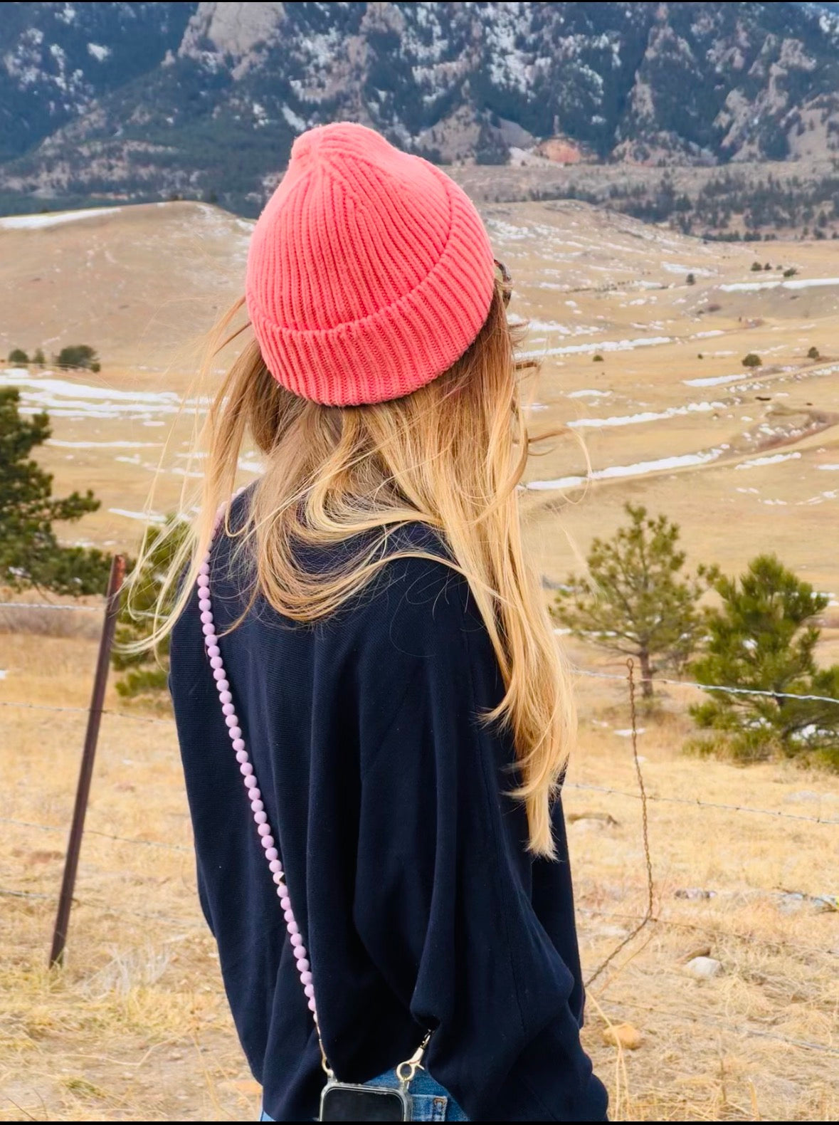 Phone Case with Beaded Chain - Pink